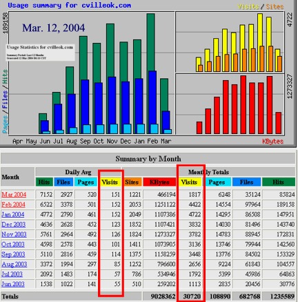 June 11, 2003 - Mar. 11, 2004 30,720 total visits to cvilleok.com |