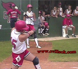 Taylor Whisenhunt wasted no time getting the Lady Cards on the score board as she led off Collinsville half of the 1st inning with a home run over the left field wall. |