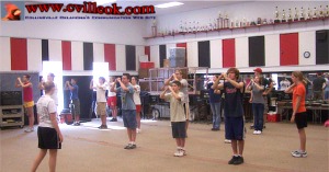 Ron Lewis (above) is the new director of the Collinsville Crimson Cadet Band. Ron said he is "excited to be here" and will "need to work on numbers first." He said the early count shows only about 48 kids in band so far (grades 7-12). He would like to increase those numbers each year. Ron came here from Bartlesville, but said he had a similar program at Muldrow and grew that band from about 60 up to 100 over a few years. He said he would start a jazz band and have them perform at basketball games to increase band visibility. Summer band officially kicked off today but many members have been at it for weeks already. See the band's page on the school web site for more info on this year's marching program. Ron will be assisted by Heath Miller who in his second year with the band. |