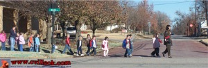 | These kids were taking advantage of the pleasant weather Monday Morning (Dec. 12th) as they made some type of field trip near 13th and Main. They had missed the previous 2 school days due to snow (Thursday & Friday). |