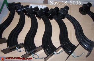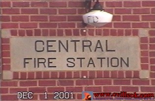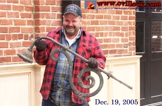 City Commissioner Trent Rogers holds the original light fixture from the front of City Hall. That fixture and the newer replicas below will soon be installed as the refurbished City Hall nears completion. The middle photo (taken just hours after the December 2001 fire that has sidelined the building for 4 years) shows the bulb on the fixture that Trent was holding above. (Previous Coverage) |