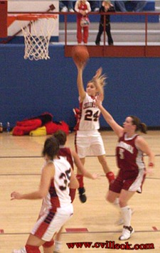 Erica Holly (#12) didn't make the shot as she was fouled (left) but made her free throws afterward. |
