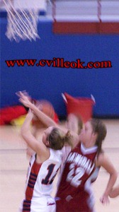 Naomi Nelson (#14) and her sister Rachel Nelson (#31) shared some court time Thursday in the win over Barnsdall, Jan. 27th. Rachel goes for a loose ball in the right photo. |