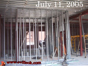 Interior walls are being framed this week in the middle lower floor of City Hall. |