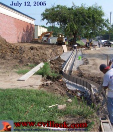 A parent/student loading curb cut is being framed in today on 14th Street. The bus loading zone will be on Center at the front entrance to the new building. |