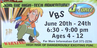 I don't have a complete list of Vacation Bible Schools for Collinsville (which I would add to my events calendar if provided) but did notice flyers and signs for the Nazarene Church (sign above) and the First Baptist Church both June 20-24. -- Ted |