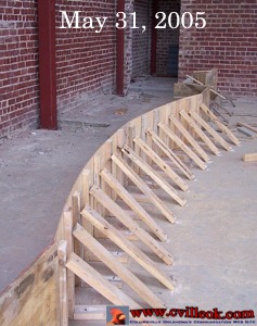 This curved frame will help shape the base for the new city commissioner seating / desk area in the large meeting hall in the front of new City Hall. This new meeting area will be where the firetrucks (and even fire horses) were housed for many years. |