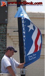 City crews were swapping out the Chamber of Commerce banners Wednesday June 8th (from the red to the blue) for a fresh summer look. |