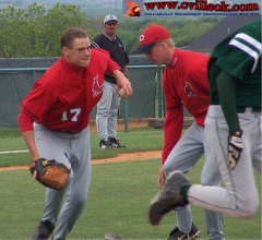 Eric Sirmon (#17) fielded this bunt and threw out the Catoosa runner in the