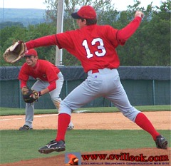 West (#10) pitching in the second game.