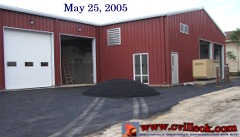 fresh pile of asphalt (for the top layer) waits at the back drive of the new