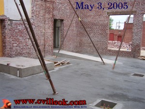| The new floor in the City Hall building has been poured and awaits the steel which is expected within a week. |