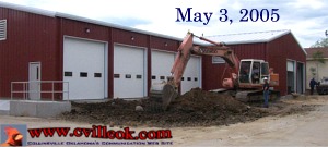 | The front and rear entry ways to the heavy fire trucks at the new Fire/EMS building were being evacuated and refilled to make them more solid before final paving is added. |