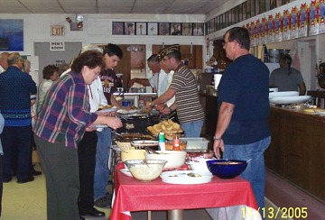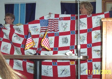 The hand embroidered king size quilt was made by the ladies of the Ladies Auxiliary. It was raffled off at the Thanksgiving Dinner 11/13/05. The winner of the quilt was Karen Taylor. |
