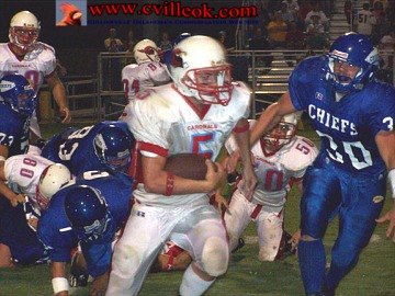 Cardinal defender wraps up the Berryhill ball carrier for the tackle and a loss