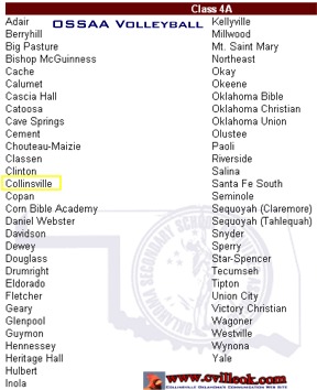 | Haven't seen any post season groupings yet, but here is the entire 4A volleyball group from the OSSAA web site. |