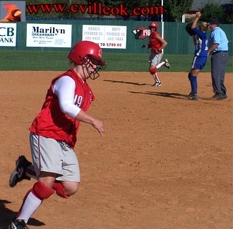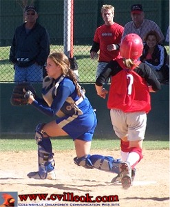 It took 9 innings for anyone to score a run ... but Collinsville got in done in the 9th after Katie Pellitier drew a 1-out walk and Hillary Brown's 2-out triple sent Katie to the plate. Hillary scored later on a passed ball and the Cards held Claremore Sequoyah in their half of the 9th for a 2-0 win. Kelli Dunagan pitched the complete game and had lots of defensive help in the field.