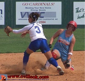 | Collinsville was the "visiting" team in this slow moving game and scored 4 runs in the 1st, 2 in the 2nd, and 5 in the 3rd to reach the 11-1 final score. Lady Card hits were plentiful including doubles from Taylor Whisenhunt, Katie Bryant, Hillary Brown, Katie Pellitier and Rebyl Richardson. |