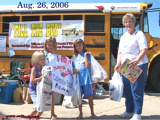 | The Collinsville PTO and CEF "Fill the Bus" effort to collect school supplies was centered at 5th & Main Saturday morning. Mary Risley brought several sacks of supplies provided by the Collinsville Downtown, Inc. board of directors (below). Many other organizations and individuals also contributed to the effort. (Previous Coverage) |