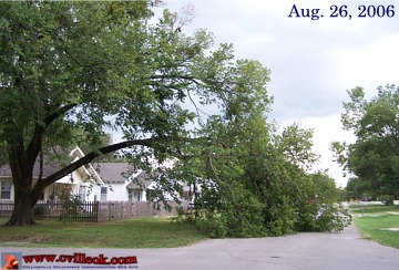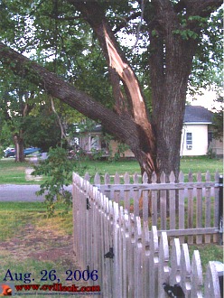 | The wind gusts ahead of the front that blew in about 7:15pm Saturday split this tree at 13th and Spring. Spring Street was blocked until city crews could clear it as the rain and lightning were really getting ramped up. -- Ted | |