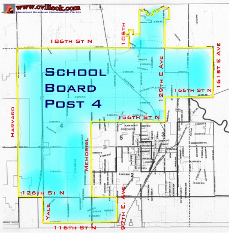 Due to a vacancy in post #4, the Collinsville Public School Board of Education will accept applications to fill the unexpired term. An application for vacancy for post #4 may be picked up August 16 through August 28, 2006, between the hours of 8:00 A.M. and 4:00 P.M., at the Education Service Center, 1119 West Broadway, Collinsville, Oklahoma, 74021. The application must be returned no later than Friday, September 1, 2006, for consideration. The Board of Education will make a decision as early as the September 5, 2006 board meeting, or no later than October 6, 2006.