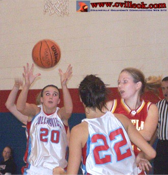 Donelson (#20) takes a pass from Lacey Koscheski (#22) under the basket for