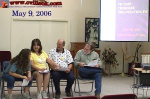 | The top photo shows the VCO officers confering at the May meeting. District 8 Cherokee Councilman Buel Anglen addressed the Collinsville meeting on topics ranging from his May 13th Hog Fry to a possible vote by Cherokee citizens on a constitutional change in response to the recent ruling allowing tribal benefits to "Cherokee Freemen". | |
