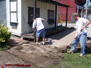 | Member of the Collinsville Garden Club were working to improve the landscape around the office of Collinsville Downtown, Inc. Saturday morning. |