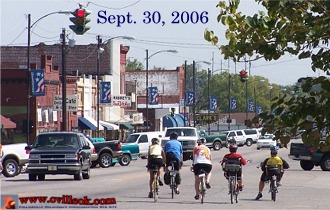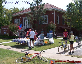 | Collinsville's Main Street and the Library had some extra 2-wheel traffic Saturday as the Tulsa Bicycle Club had a rest stop at the Library for bike riders on their 50, 62 or 100 mile routes. The rides benefited the Community Health Organization and over 400 riders were registered. (www.tulsabicycleclub.com) |