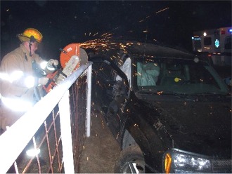 ![]() Firefighter Dustin Ray is cutting the fence so that extrication could be done. |