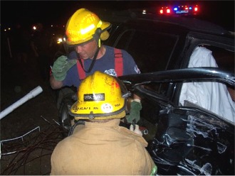 ![]() Firefighters Tim Cole and Dustin Ray had just completed extrication so extraction of the patient could be done. One was taken to the hospital with injuries and the other had no injuries. There was also property damage. |