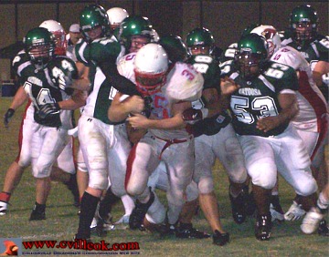 Watts (#35) drags a few Catoosa tacklers along as he crosses the Catoosa 26