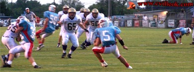 Chronister (#5) intercepted a Mannford pass inside the 5 yard line to stop Mannford's