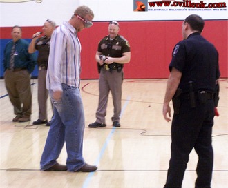 CHS senior David Chester was one of the students who wore special goggles to simulate vision & motor skill imparement caused by drinking alcohol. | CHS Principal Cory Slagle also demonstrated his reduced skills wearing the special goggles. |