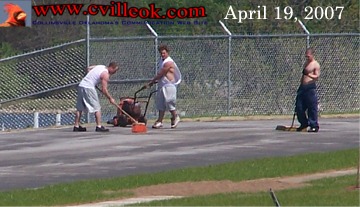 Workers were scrubbing the asphalt surface of the new CHS track Friday to prepare for the final cushioned surface. (Previous Coverage) |