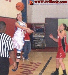 CHS Girls Basketball at Pryor Thurs Jan. 25th: Cassie Sallee was the leading scorer with 16 points and was 6 for 6 at the free throw line. Kaycee Donalson was next with 14, Katie Sullivan had 13, Linsey Curtis had 10, Lacey Kocheski had 9, Mariah Mcelroy 4, and Kelci West 1 point. -- Cindy Sallee 1/27/2007 |
