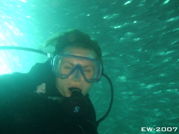 huge manta rays swam by during Emily's dive at the Galapagos Islands ... one