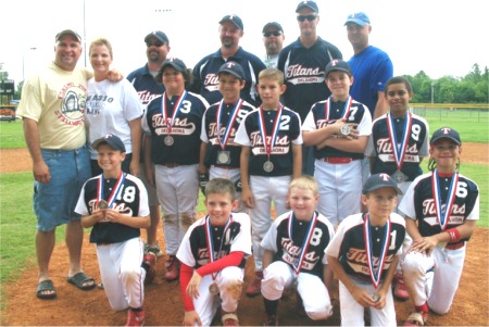 All the parents of the Oklahoma Titans 10/under baseball team would like to send out a big congrats, to all the players and coaches, on another 1st place victory last weekend at the Super Series Tournament at Allstar Sports Complex. They also played in an extremely exciting championship game over Memorial Day weekend where they took home 2nd place. The boys have done extremely well over the past few months and have earned the #1 national ranking for their division. We could not be more proud and we are looking forward to the State and National Championships coming up. We would also like to send out special thanks to Garth Brooks and Trisha Yearwood for making the Memorial Day Tournament even more special. I have included a picture of the 1st place Allstars with Garth Brooks and Trisha Yearwood at the Memorial Day Tournament. Way to go Titans!!!!!!!!! -- Submitted 6/6/2007 |