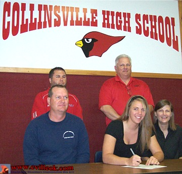 Rachel Nelson signed to play soccer with Northern Oklahoma College (N.O.C.) at Tonkawa. She was joined at the signing today (at CHS) by her parents (Tim and Vicki Nelson seated) and CHS Soccer Coach Justin Schubert (standing left) and N.O.C. Soccer Coach Michael Riley. | ||||