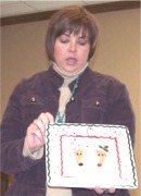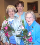 | (right photo:) Home Rep members EvaJo Sheehan and Helen Murphy were once again recognized for over 50 years of GFWC membership, receiving flowers from President Anita Mitchell. A note of congratulations was also read from the OK NE District President, Joan Maddox. (Previous Coverage) |