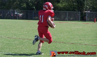| Conner Crutchfield (#11) returned the Jenks 2nd half kickoff all the way for a Collinsville touchdown in this 3 photo sequence. This was the only second half score for the 16-0 final. |