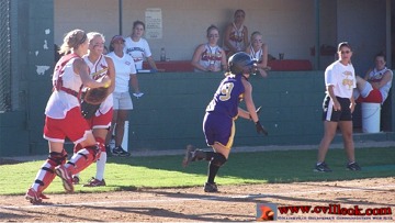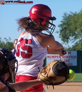 Brittni Schmauss had a healthy cut but this Bristow pitch made it to the catcher's glove. |