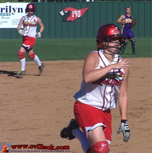 Emilee Richburg is headed to 3rd and Lacy Cook to 2nd with a double in the 3rd inning. |