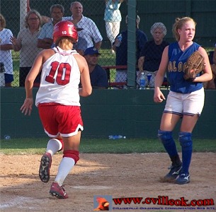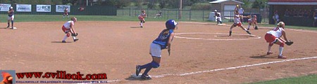 was forced out at the plate. Singles by McElroy & Linsey Curtis and a walk