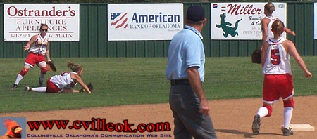 Collinsville got a force at the plate and tried for an out at 1st also but Oologah