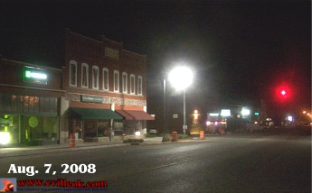 | At dusk this evening two of the new Main street lights powered up with the first substantial downtown night lighting since before the Dec. 9, 2007 ice storm. (Previous Coverage) |