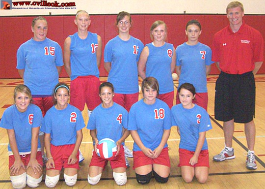 Collinsville 8th Grade Volleyball Team -- (L-R) Front Row: Kayla Coleman (6), Haylie Kirby (2), Shelbie Kirby (4), Michele Linville (18), and Chelsea Summers (3). Back Row: Misty Royall (15), Kryston Wheeler (10), Michaela Branen (13), Bayli Felkins (8), Raven Williams (7), and Coach Ryan Christian.