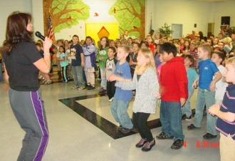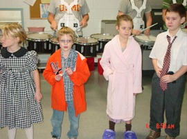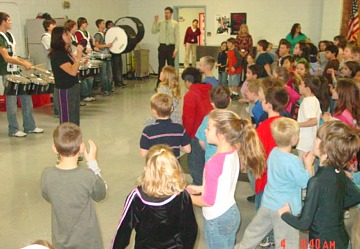| Here are some pictures from our 100 Day Celebration. The drumline from the CHS band came over to supply the beat while the students counted to 100 by 1's, 2's, 5's, & 10's. Ramona Young was the emcee. -- Debbie Wolfe |