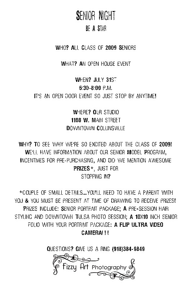 (email questions/comments to wrightted@aol.com). Ted Wright -- last update 7/11/2008 (FizzyArtSeniorNight.html) www.cvilleok.com Copyright 2008 -- Collinsville, Oklahoma |