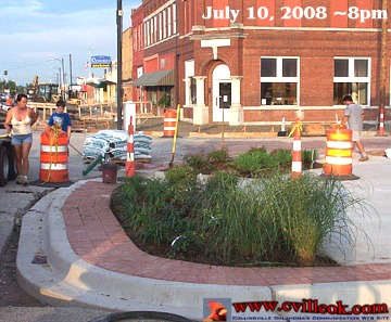 The initial greenery in the downtown streetscape was planted Thursday evening July 10th on the SW corner of 11th and Main by Movie Gallery. |